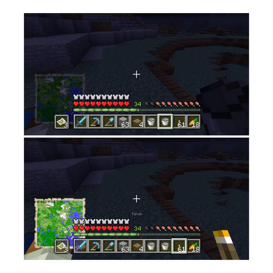 - Используйте шелковое касание для сохранения факелов в инвентаре