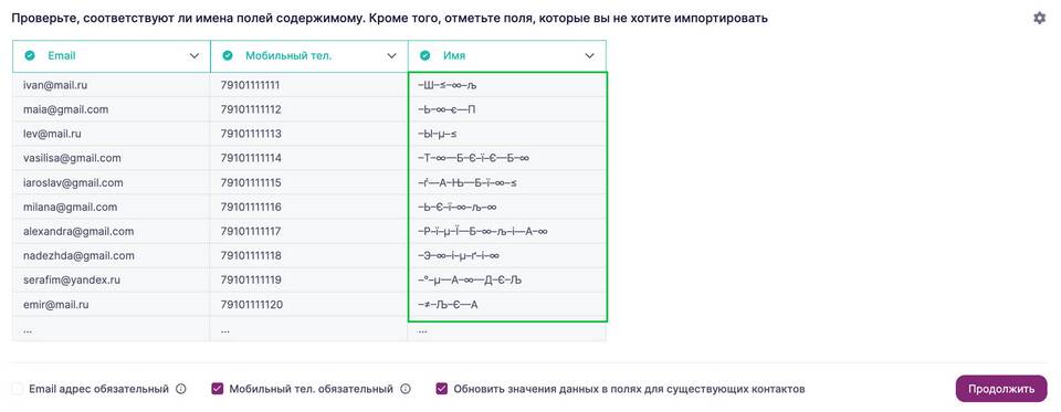 - Для MySQL установите кодировку соединения: SET NAMES utf8